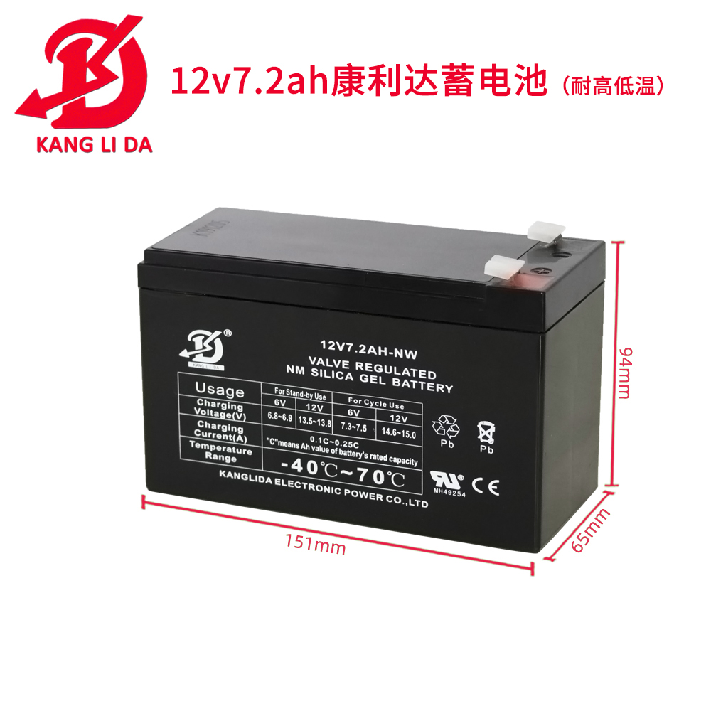 康利达12V7.2AH耐高低温免维护阀控密闭蓄电池