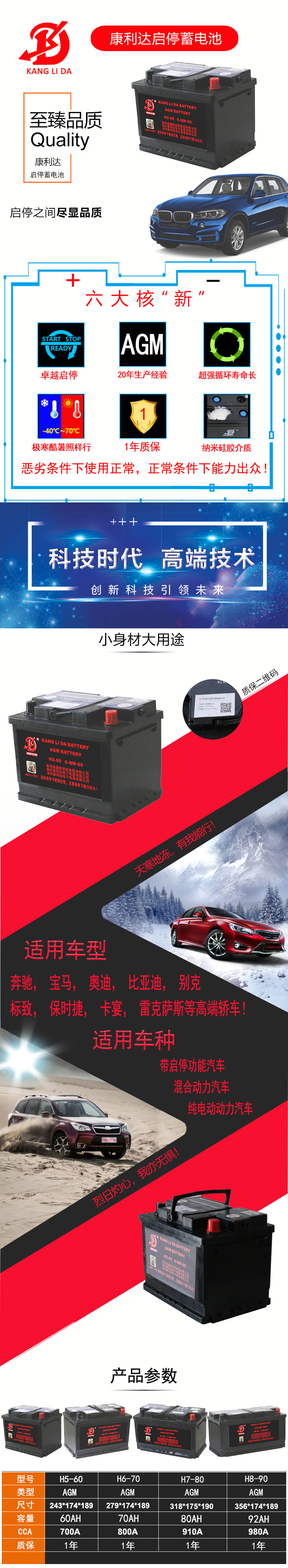 产品类别:汽车电瓶启停蓄电池 AGM-H5-60AH 奥迪A3/东风风神