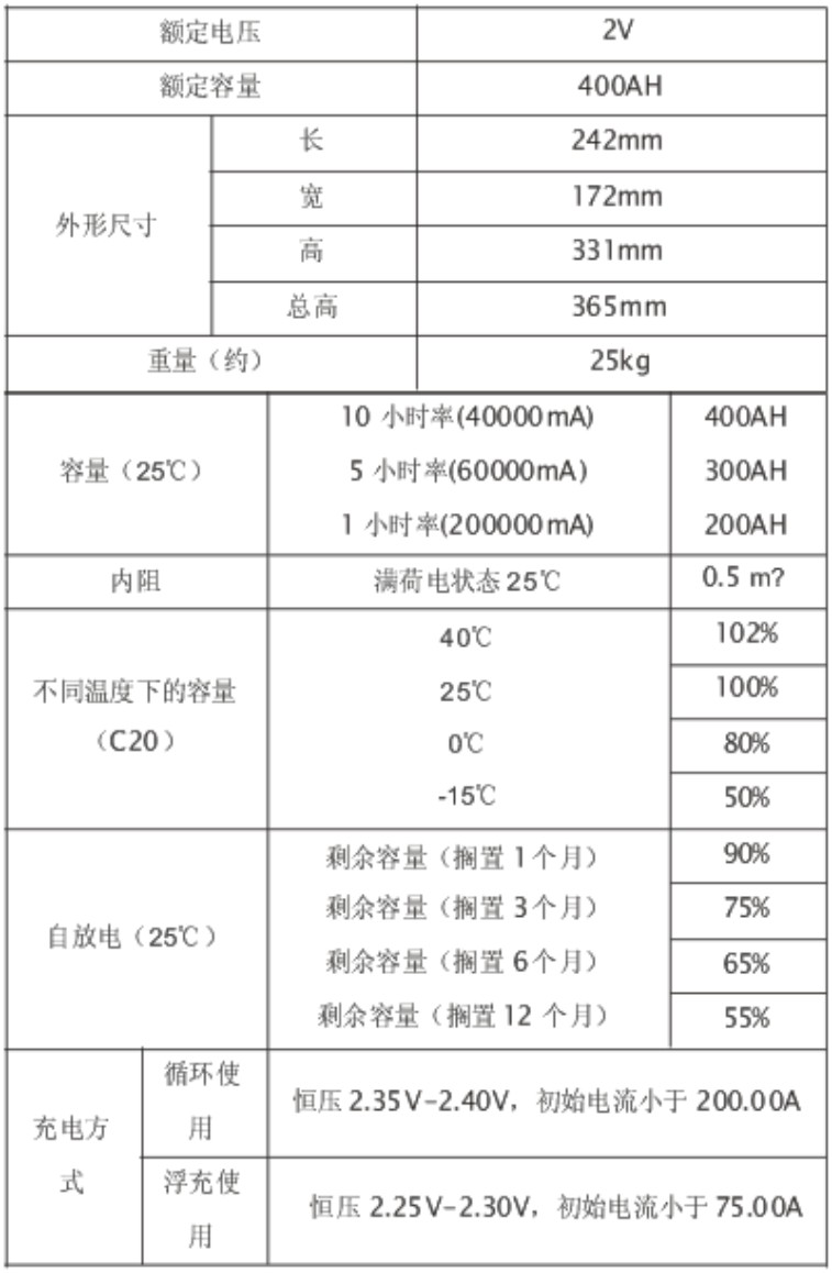 容量:400AH