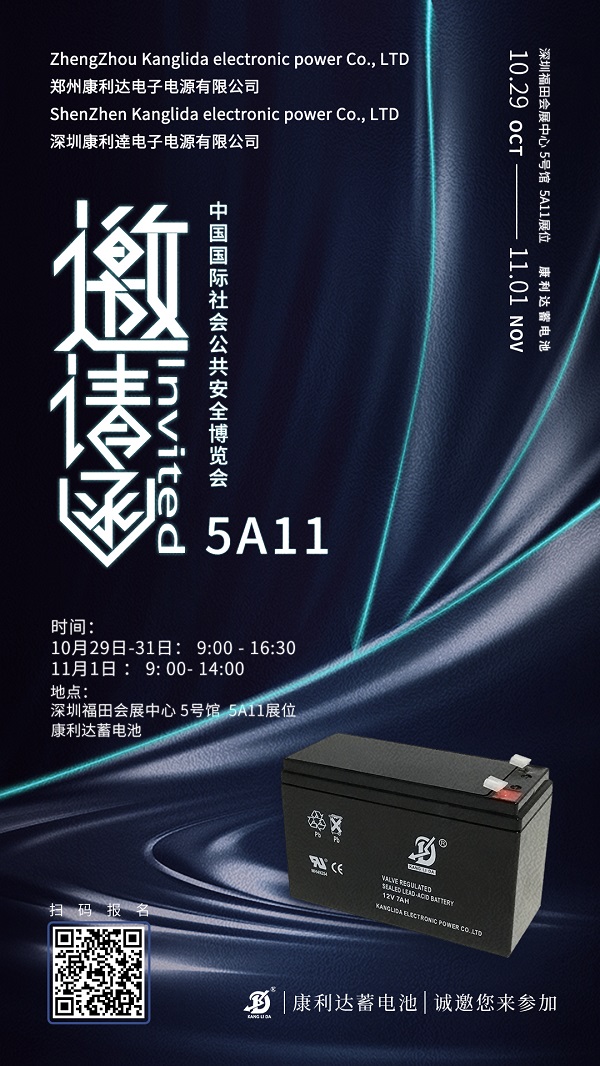深圳安博会于10月29到11月1日在深圳福田会展中心举行, 康利达蓄电池诚邀您来展位5A11洽谈合作, 扫码获取免费门票, 我们不见不散!...